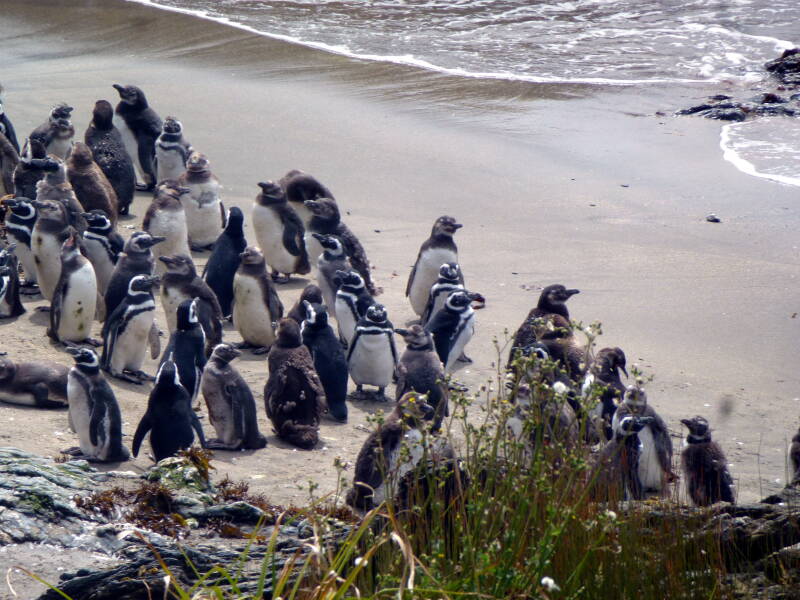 Magellan- und Humboldt-Pinguine mit Jungen