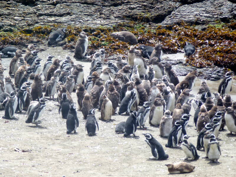 Magellan- und Humboldt-Pinguine mit Jungen