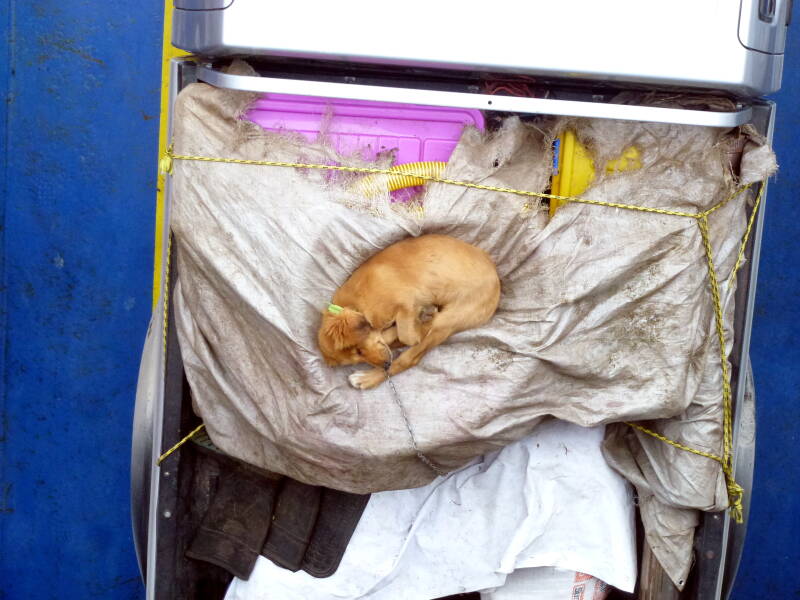 Schlafender Hund auf Ladefläche